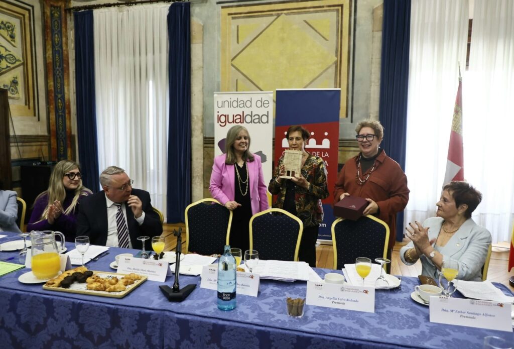 El día 10 de marzo de 2025 hemos celebrado en la Sala de Pinturas del Palacio Arzobispo Fonseca, un desayuno-debate sobre la mujer, y la entrega de premios a tres magníficas profesoras: Dª Angelita Calvo Redondo, Dª Esther Santiago Alfonso (por parte de la Unidad de Igualdad) y Dª Soledad Murillo de la Vega (por parte de ICASAL).