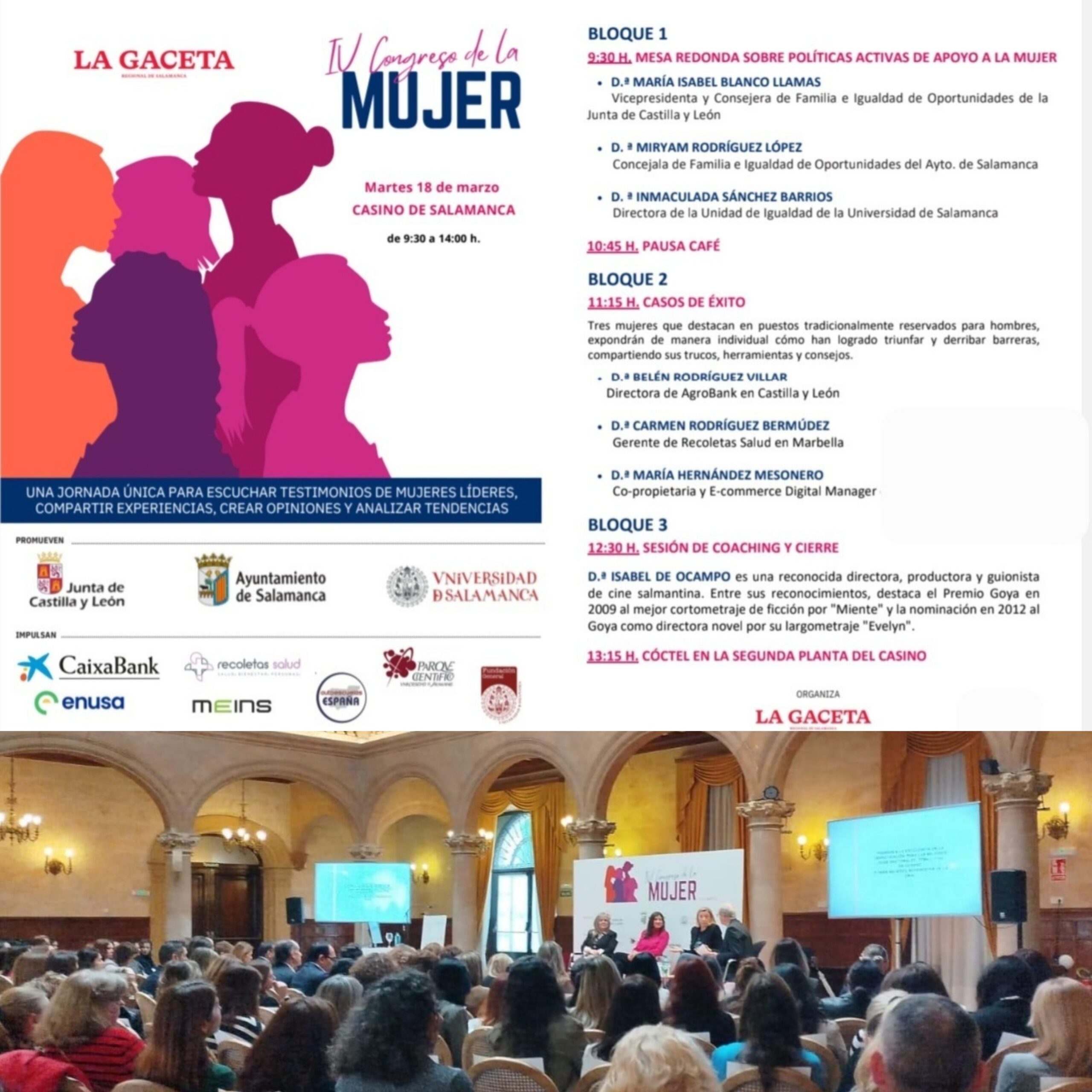 IV Congreso de la Mujer, celebrado el 18 de marzo de 2025 en el Casino de Salamanca. «Una jornada única para escuchar a mujeres líderes».