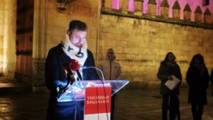 El acto contó además con la presencia de la vicerrectora de Estudiantes, Igualdad e Inclusión Social, Marta Gutiérrez Sastre, y de la concejala de Familia e Igualdad de Oportunidades del Ayuntamiento de Salamanca, Miriam Rodríguez López, quienes acompañaron a la comunidad universitaria en esta cita imprescindible dentro del calendario institucional.