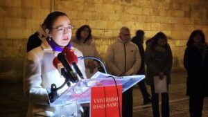 Con motivo del Día Internacional para la Eliminación de la Violencia contra las Mujeres, la Universidad de Salamanca celebró ayer en el Patio de Escuelas la lectura del Manifiesto de la Red de Unidades de Igualdad de Género para la Excelencia Universitaria (RUIGEU), un texto que reivindica la necesidad de reforzar el compromiso institucional y social frente a todas las formas de violencia machista.